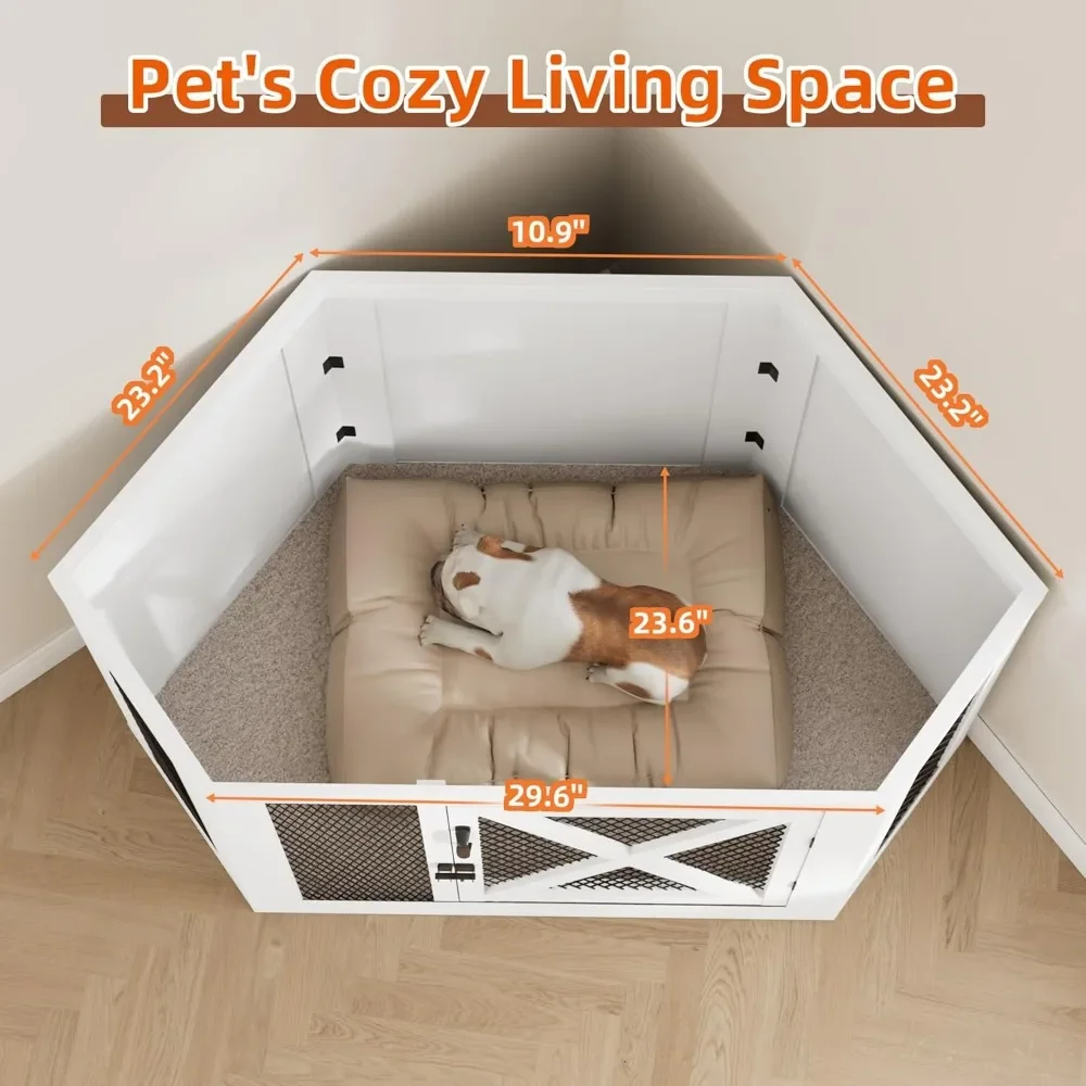 - Space-Saving Corner Design: Maximize your home's corners with this indoor pet crate that fits snugly against the wall, optimizing space in small living areas.
