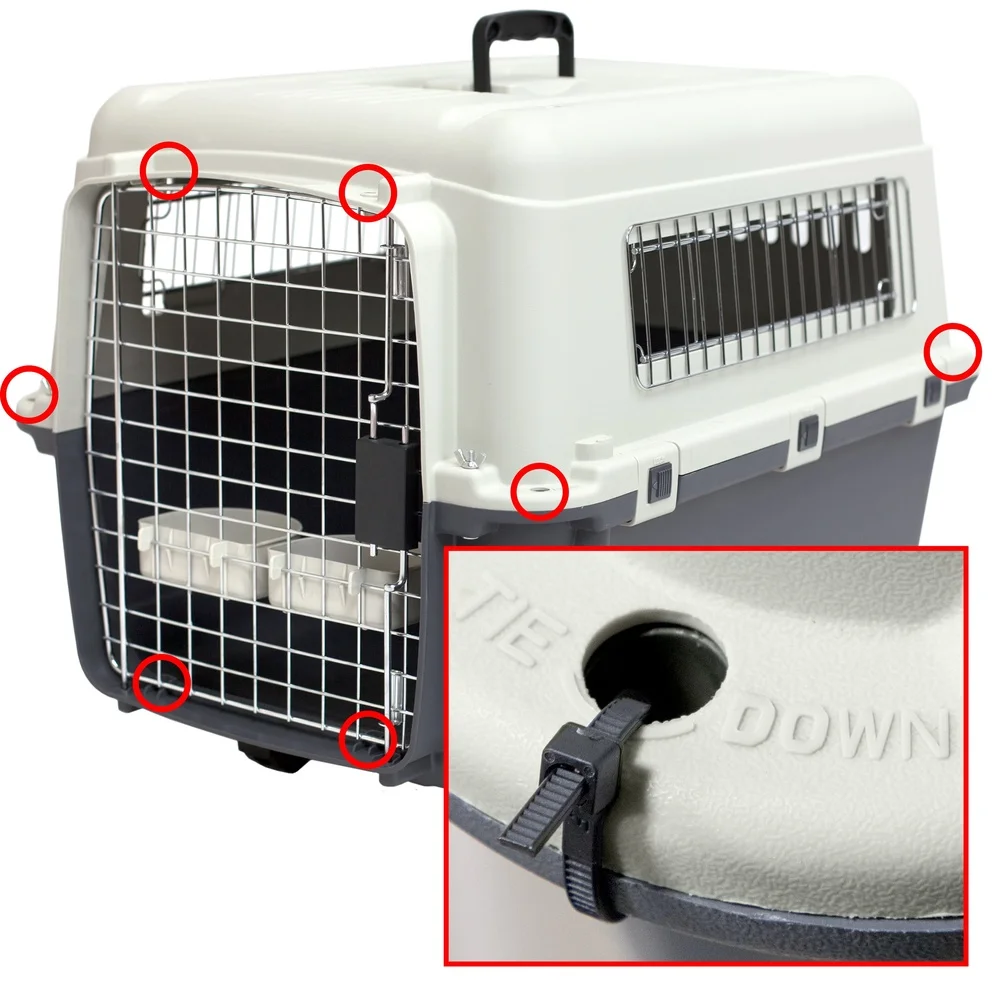 This is a plastic kennel designed for a lifetime of use. Our plastic crate will be your “go to” everyday home crate and Travel kennel. Size your dog and to ensure you buy the correct size kennel. We also had airline travel in mind when designing this kennel. We include everything you need should you ever fly with your dog. Crate/ kennel assembly is fast and easy. Locking snaps hold the kennel halves together; additional included metal hardware locks the kennel together giving you peace of mind that your crate will make it'safe and secure. Some dogs chew their escape through plastic ventilation holes. We use metal slats to mitigate the chewing problem and keep your pet safe. Accident moat pulls spills away from your pet’s body, out to the edges of the kennel and a strong metal kennel door with a smooth, easy-to-grasp latch thick impact resistant poly shell can take a wallop and keep on going. Airline and cargo carrier rules vary between countries and airlines. Pet crating and kennel shipment rules change regularly, so be sure to check with proper authority about pet shipments. Compleete pet certifications and immunizations before your pet’s travel date. Limit kennel time, don’t park under the sun, and keep your pet in ventilated areas with temperature control and air movement. For pets and intended use only.