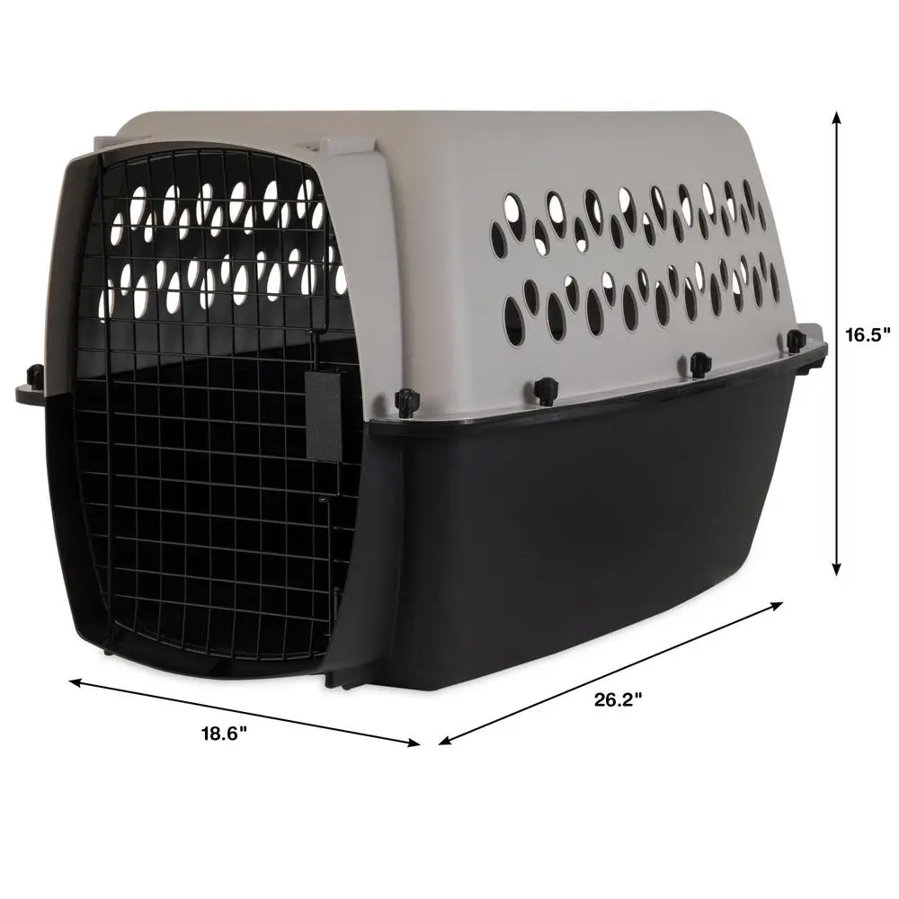Pet Kennel S/M 26" Plastic Travel Carrier Dogs 15-25 lb Grey Portable & Easy to Assemble Airline Friendly Sturdy & Durable