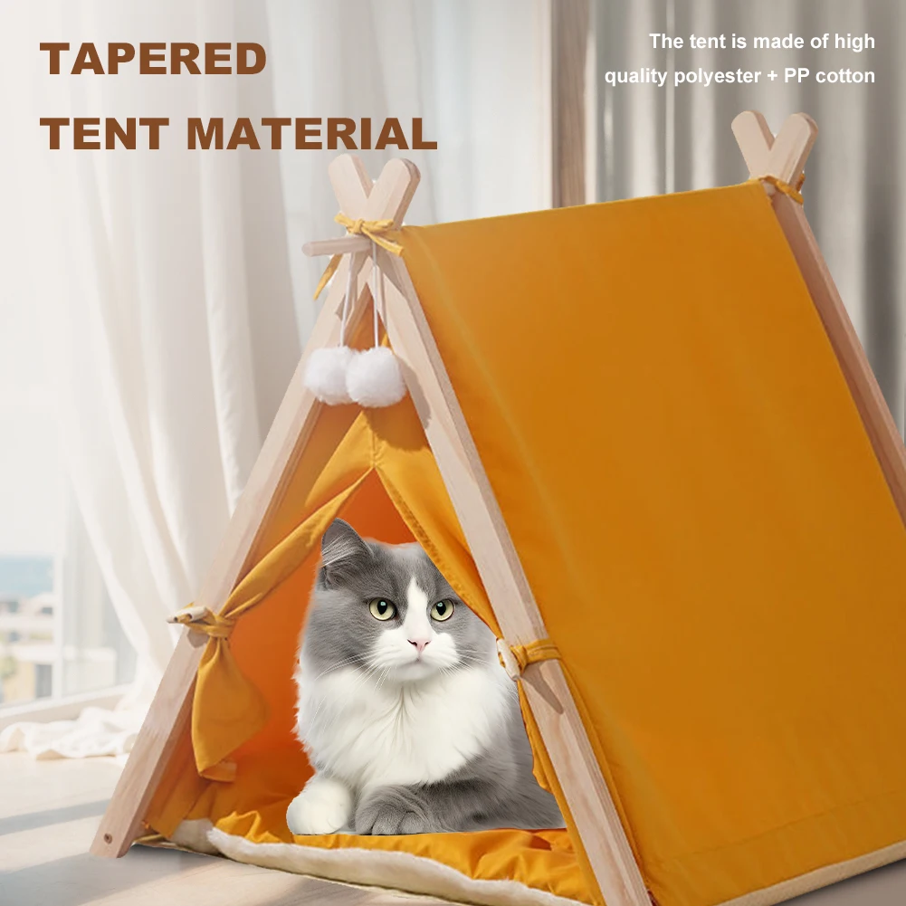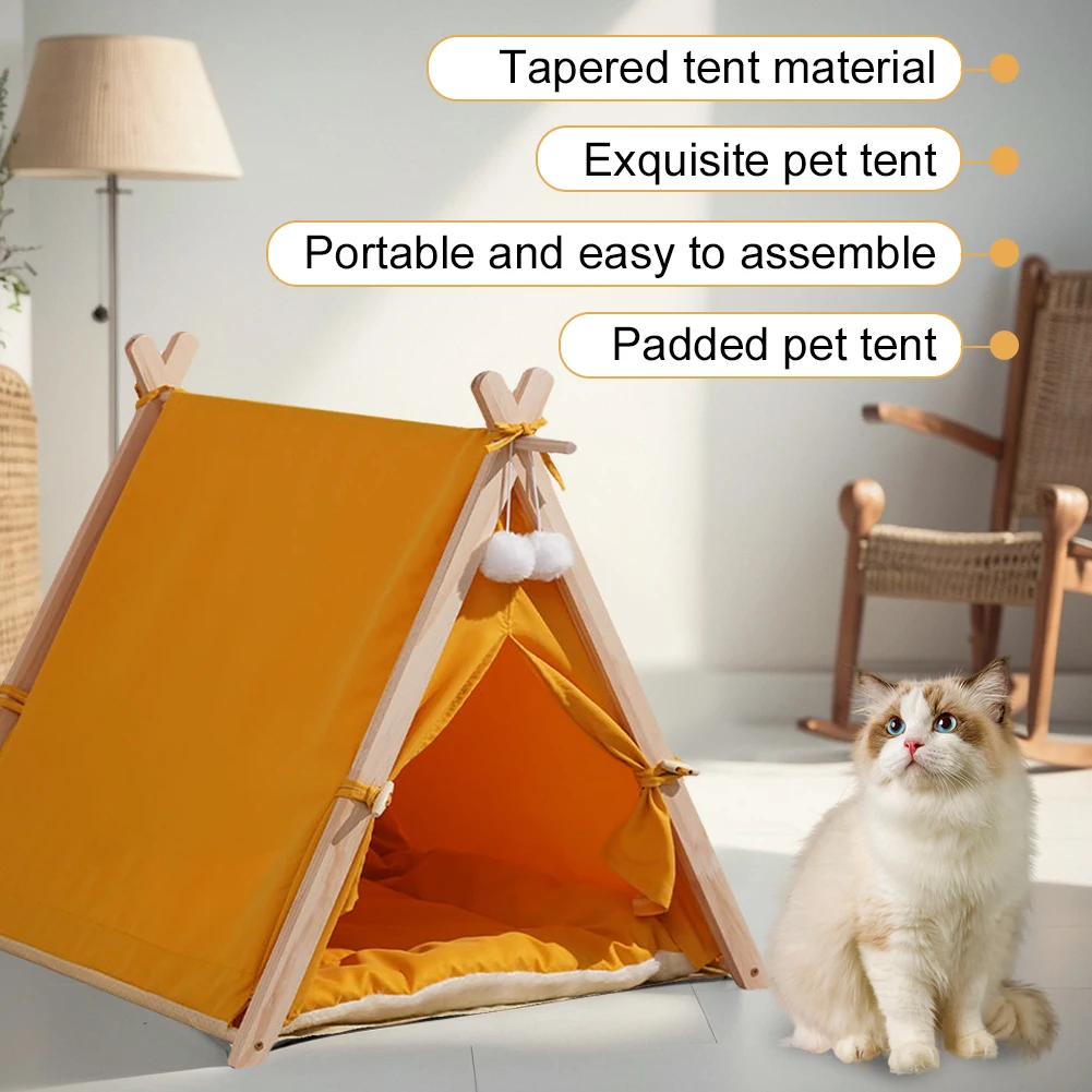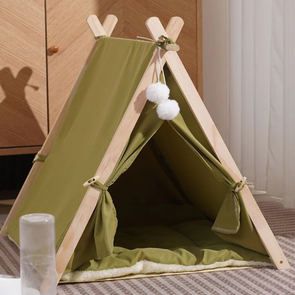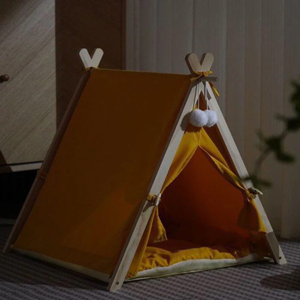 Pet Tent Wooden Frame Portable Pet House Oxford Fabric Wood Cat Dog Tent Washable Portable Removable Dog House with Soft Cushion