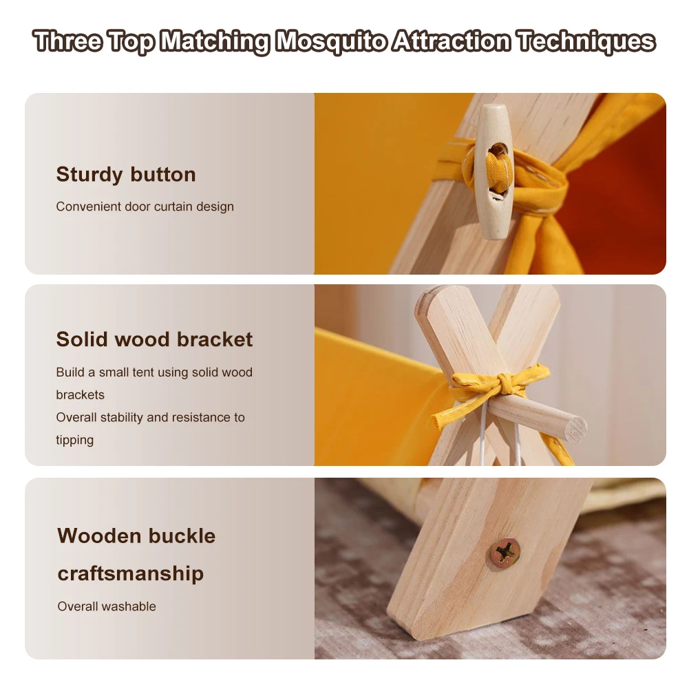 4. Thick Cushioned Comfort: The wood cat dog tent features a detachable thick cushion with an interior filled with PP cotton and a non-slip design at the bottom, ensuring your pet enjoys ultimate comfort and stability in their resting space.